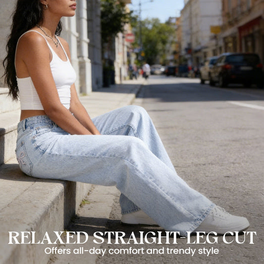 Bågbroderade jeans med hög midja och raka ben