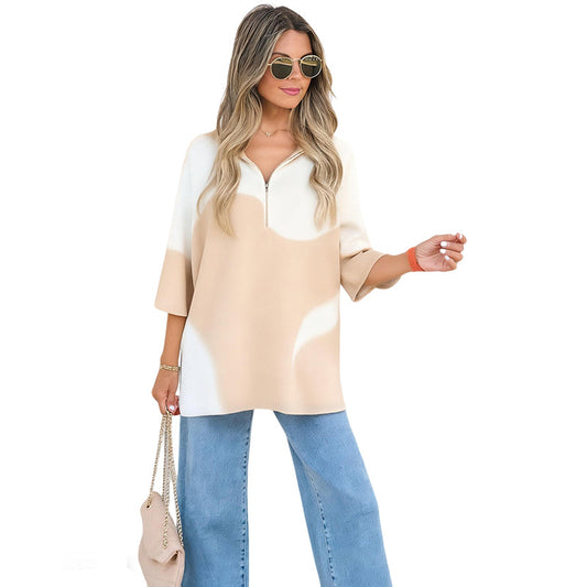 Löst sittande färgblockerad topp för kvinnor