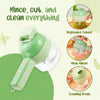 Denna elektriska matberedare har 2 olika vassa knivar som automatiskt snurrar snabbt med bara ett enkelt tryck. Det gör att du enkelt kan skiva eller hacka ingredienser till tunna strimlor eller sĂ„ grovt eller fint som du vill, beroende pĂ„ hur lĂ€nge du bearbetar dem. LĂ€mplig för vitlök, chili, morötter, lök, paprika, Ă€rtor, sparris, sötpotatis, kött och sĂ„ vidare. Den har ocksĂ„ en praktisk skalare som tar bort skalet pĂ„ grönsaker eller frukt i ett svep utan att skĂ€ra bort för mycket kött. Det multifunktionella setet innehĂ„ller Ă€ven en borste som du kan fĂ€sta pĂ„ enheten för en snabb och grundlig elektrisk rengöring.Â
