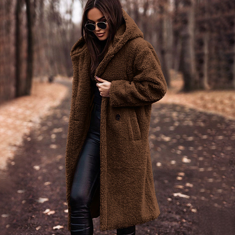 VÄr Women's Hooded Woolen Overcoat Àr tillverkad av en blandning av alpacka och polyester som ger exceptionell vÀrme och en mjuk, lyxig kÀnsla. Alpackaullen Àr kÀnd för sina naturliga isolerande egenskaper, vilket gör den till ett perfekt val för kallt vÀder.