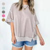 Paketet innehåller: 1 * Casual kontrastkantad rundhalsad topp med droppande axlar