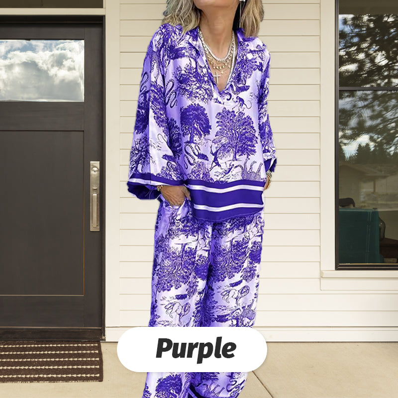😍🌿Tryckt kausal lös kostym för kvinnor i stora storlekar💋