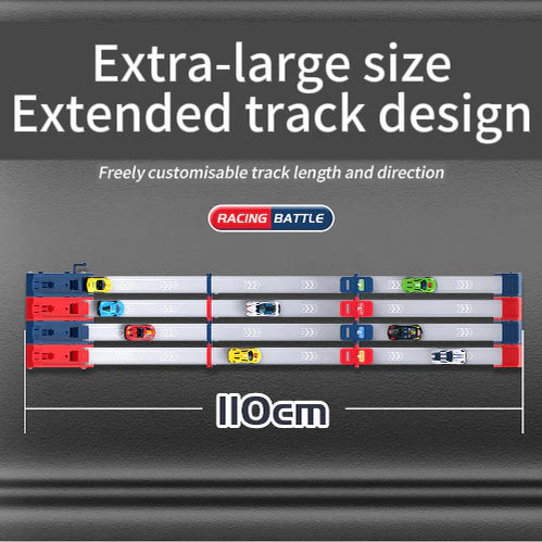 FĂRLĂNGD 110 CM BANA â Den extra lĂ„nga bandesignen ger en förlĂ€ngd bana för action i hög hastighet. Detta skapar mer spĂ€nnande lopp och lĂ„ter bilarna nĂ„ maximal fart för spĂ€nnande avslutningar med fotofinish varje gĂ„ng.
