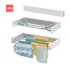 Fällbar och infällbar design: Ställningen kan enkelt fällas ihop och dras tillbaka när den inte används. Denna utrymmesbesparande funktion säkerställer att torkstället förblir diskret och ur vägen, samtidigt som det ger gott om torkutrymme när det behövs.