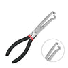Ta enkelt bort elektriska kontakter med låsbara tryckflikar som finns på MAF-givare (mass airflow), bränsleinsprutare, tändspolar och andra applikationer.använd kroken i änden av tången för att dra ut fliken för att låsa upp och använd sedan spetsen för att låsa in fliken.pressa ihop flikarna och lyft för att separera kontakten från givaren utan skador.