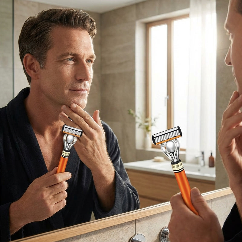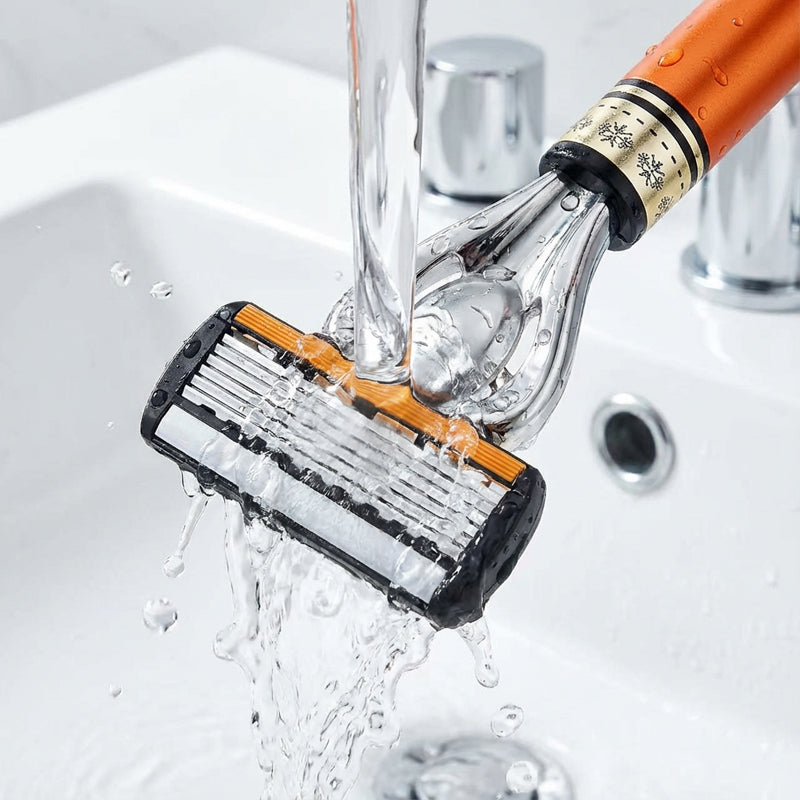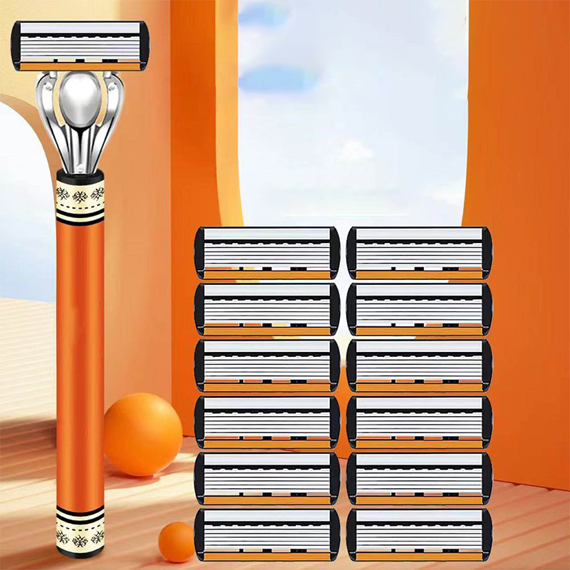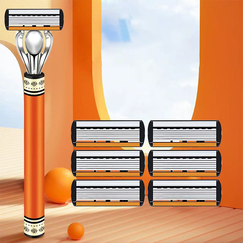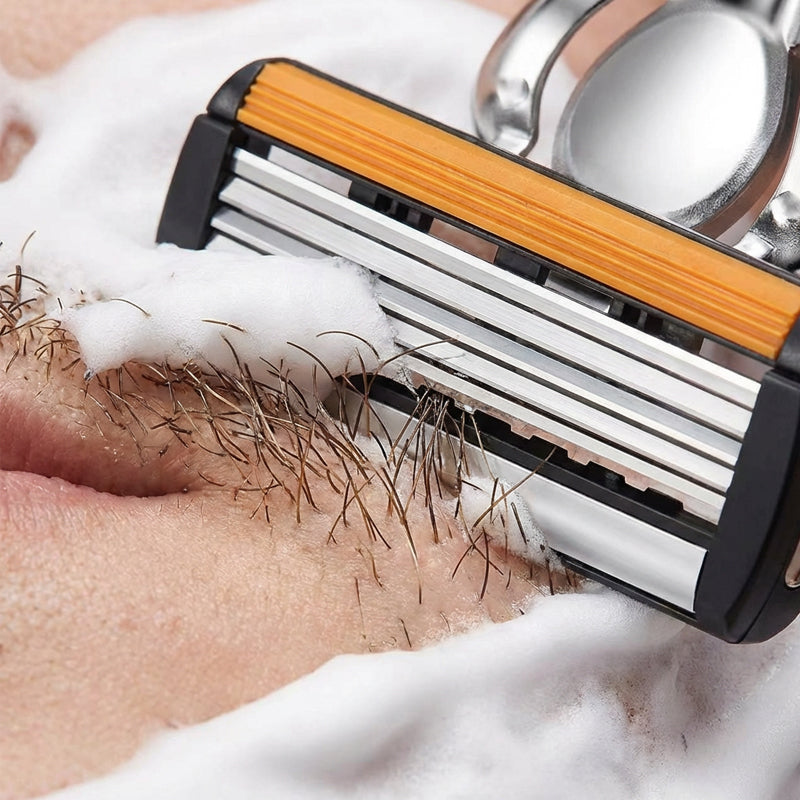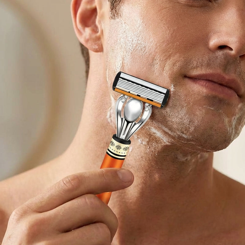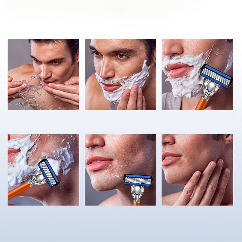 SEXLAGERS TYSKA BLAD â UppnĂ„ en otroligt nĂ€ra och ren rakning. De sex ultratunna bladen arbetar tillsammans för att fĂ„nga upp varje hĂ„rstrĂ„, vilket minskar behovet av flera rakningar och minimerar hudirritation för ett jĂ€mnt resultat.