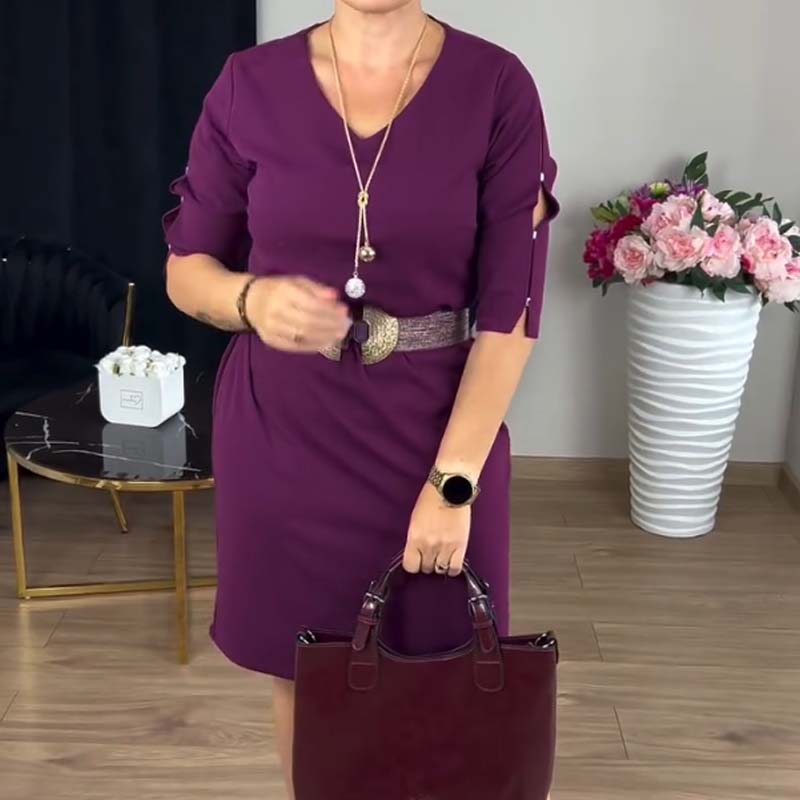 Paketet innehåller: 1 * Damklänning med V-ringning, halvlånga ärmar och knälång längd