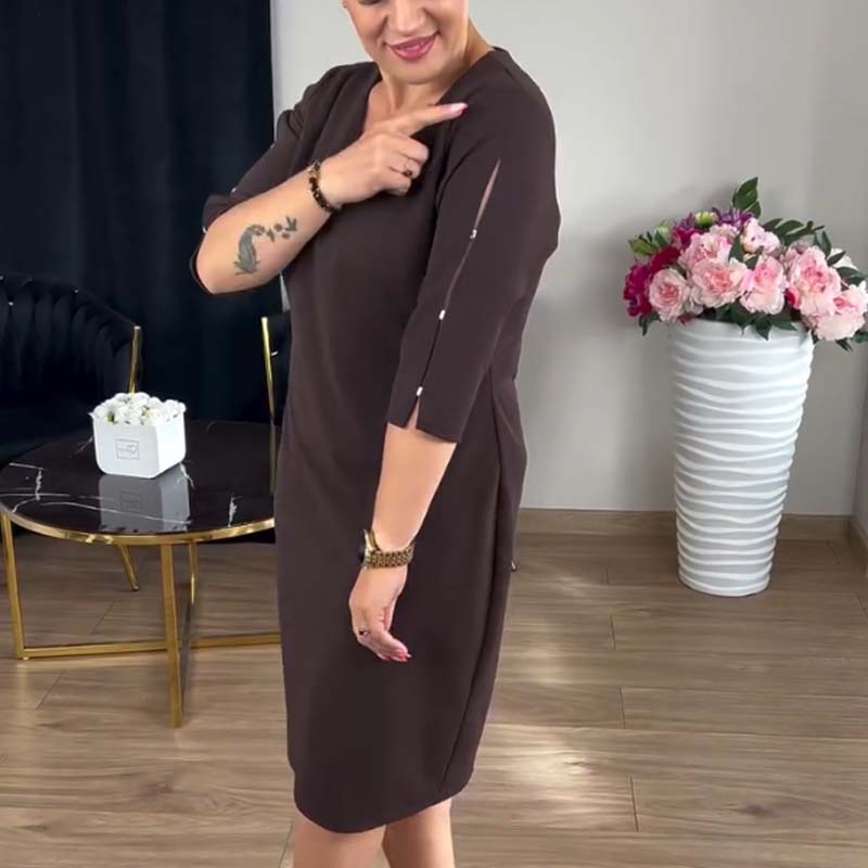 HALVLÅNG ÄRME – Halvlånga ärmar ger balanserad täckning och andningsförmåga, vilket säkerställer naturliga armrörelser utan begränsningar. Denna ärmlängd är designad för övergångssäsonger och håller silhuetten snygg och elegant samtidigt som den är praktisk för vardagsbruk. Den genomtänkta skärningen undviker överflödig volym, vilket ger klänningen ett raffinerat och tilltalande utseende.