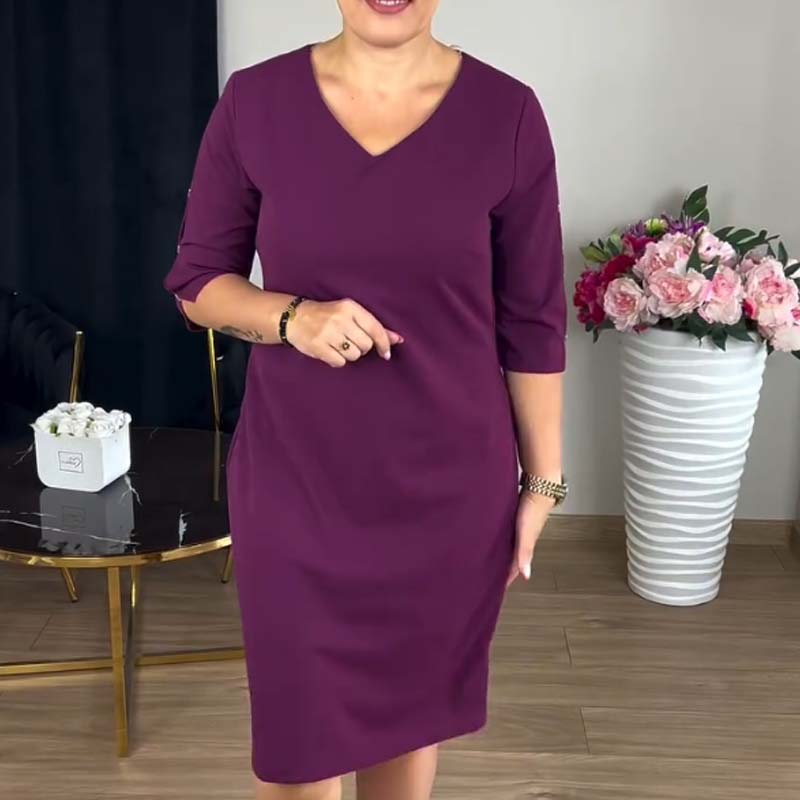 Damklänning med V-ringning, halvlånga ärmar och knälång längd
