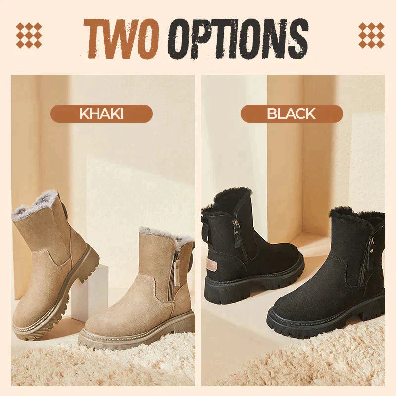 Den perfekta kombinationen av funktion och stil är uppenbar i dessa snöstövlar, med sitt tjocka fleecefoder och hopfällbara design. Dragkedjan på sidan gör det enkelt att ta på och av stövlarna.