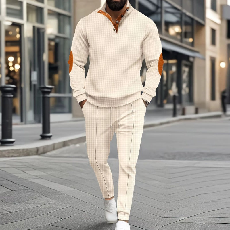 Paketet innehåller:1*Stickad sweatshirt och byxor med halv dragkedja för män