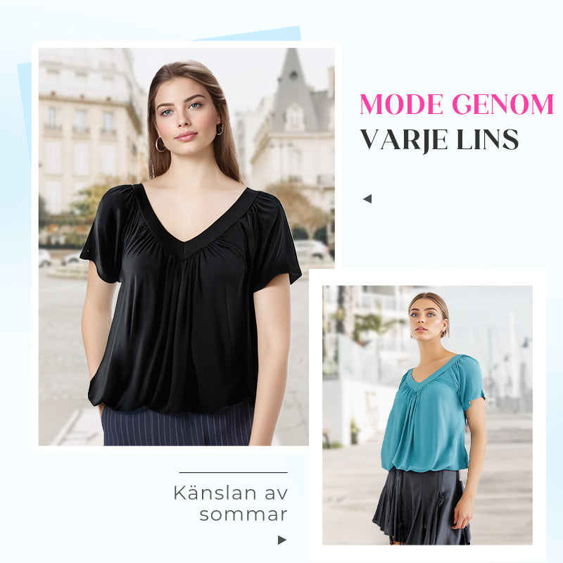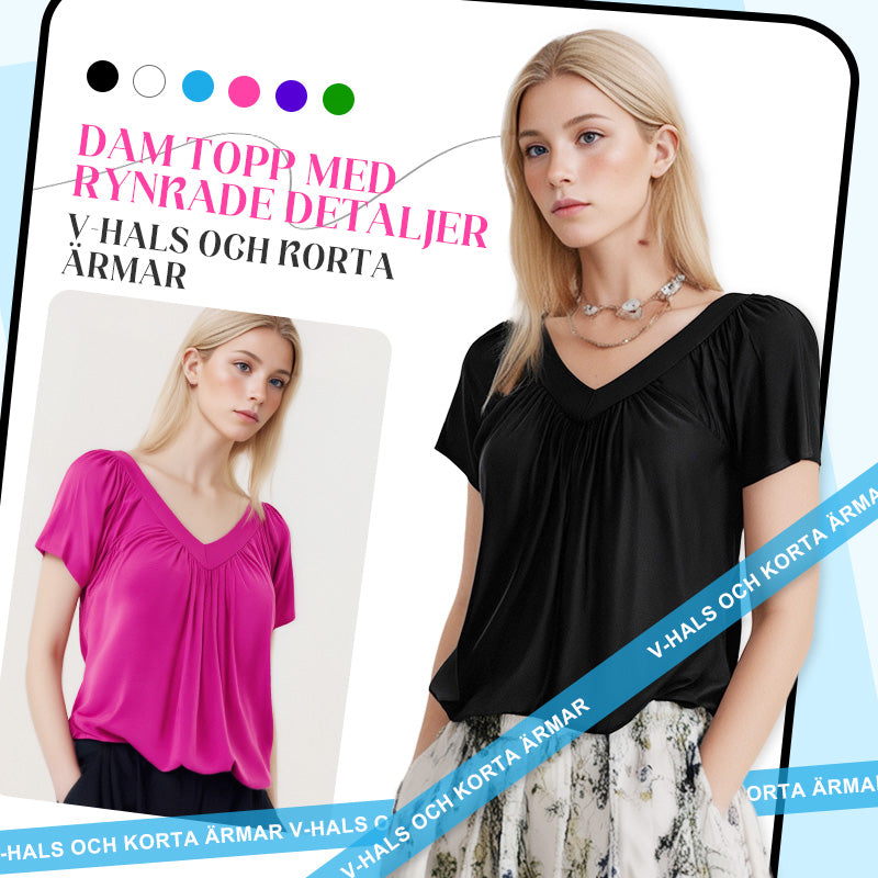 ✨2026 Het Utförsäljning - 50% Rabatt✨ Dam Topp med Rynkade Detaljer, V-hals och Korta Ärmar