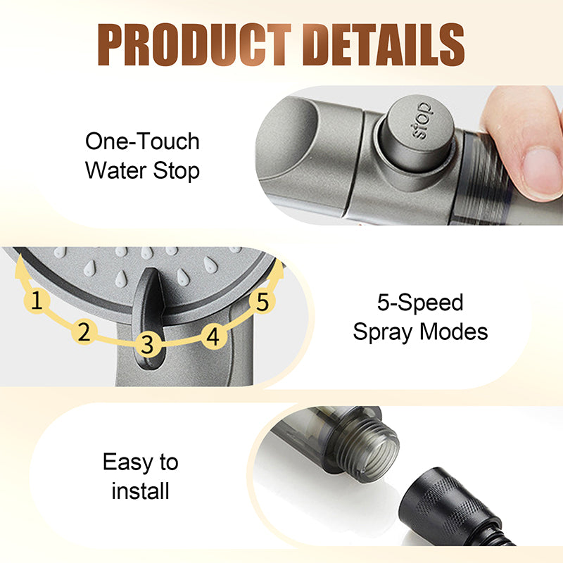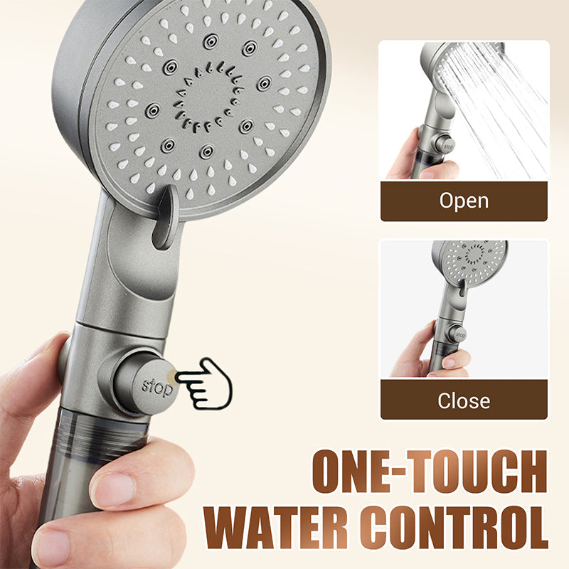 VATTENKONTROLL MED EN KNAPPTRYCKNING: Tryckknappsdesignen möjliggör omedelbar på/av-kontroll av vattenflödet, vilket eliminerar behovet av att justera en ratt. Den sparar vatten samtidigt som den ger bekväm fingertoppskontroll under duschar.