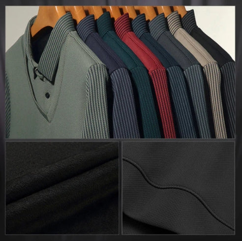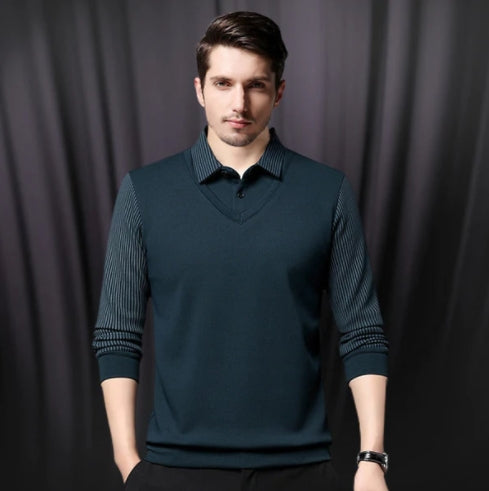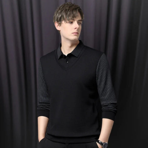 đHerrskjorta med slagmönster och imitation, tvĂ„delad stickad