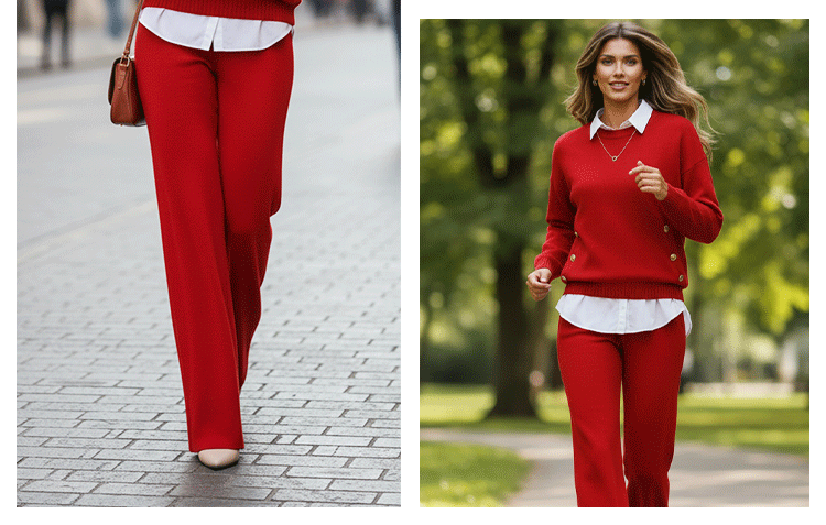 Öka kvantitet för Damset med tvådelad sweatshirt och raka byxor