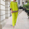 Paketet innehÄller: 1 * uppsÀttning mjuk topp med rund hals och byxor med raka ben