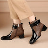 GLANSIG UTVECKLING: Dessa stövlar har en tå och häl i elegant, högglansigt patentläder, vilket ger dem ett elegant och iögonfallande utseende. Den moderna glansen kompletteras av ett djärvt fyrkantigt spänne som skapar ett elegant intryck.
