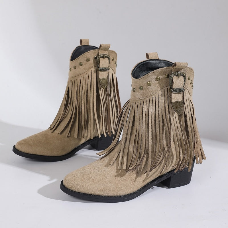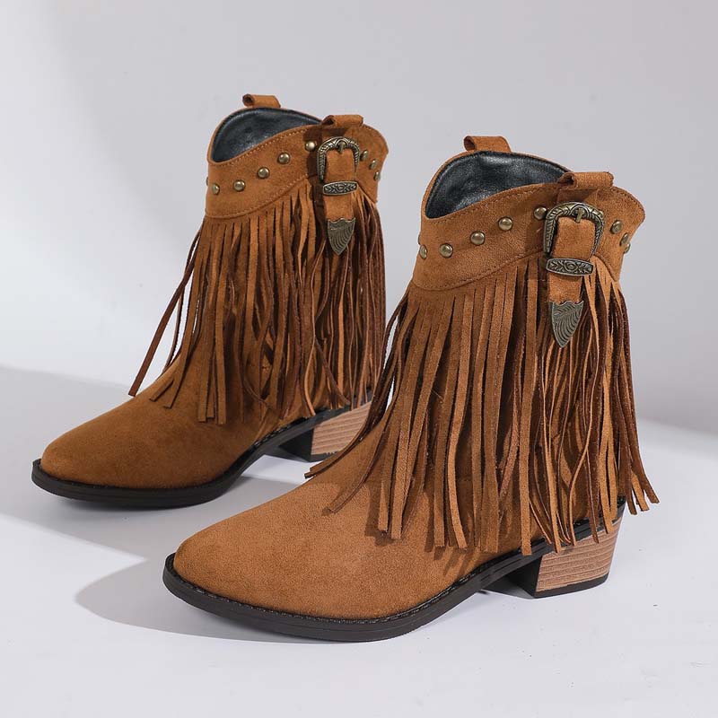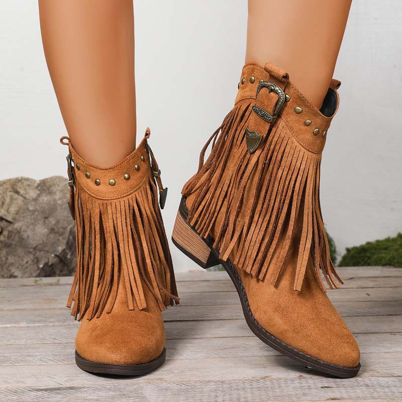 MÅNGSIDIGA FÖR FLERA OLIKA OUTFITS – Dessa boots med tofsar är designade för att enkelt kunna matchas med klänningar, kjolar eller jeans och lyfter vilken garderob som helst. Oavsett om du klär dig för en avslappnad brunch, en utekväll eller säsongens evenemang, ger de varje outfit en chic retrokänsla.