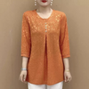 Trendig lössittande skjorta med rund hals och blommig 3/4-ärm för kvinnor